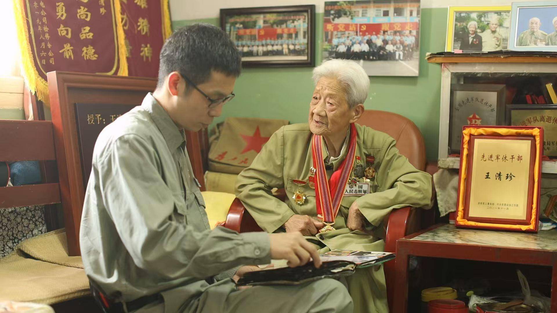 2023年10月,87岁的王清珍去世。刘航在整理遗物时,面对那些静静躺在岁月里的老照片和褪色的荣誉证书,眼泪不停往下流。“我和奶奶一起生活了三十多年。”他哽咽道,“直到她离开,才真正读懂她。奶奶深藏功名不是遗忘,而是将战争年代的痛楚与荣耀深埋心底,转化为默默奉献的前行力量。”那一刻,刘航更加坚定自己的使命——接过接力棒,成为红色基因的忠实讲述者与传承者,让奶奶和革命先辈的精神永远流传。