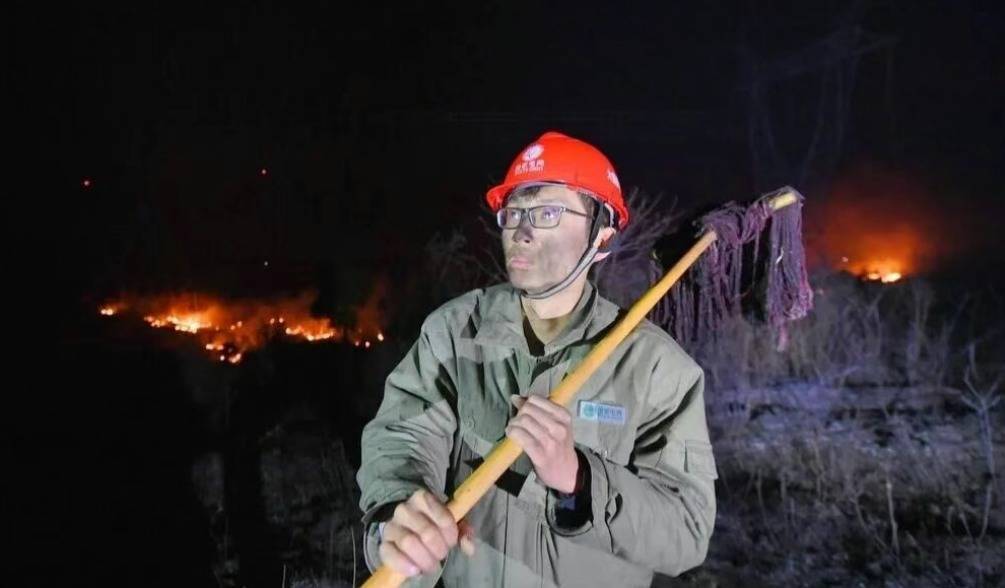 2017年2月14日,刘航在扑救大悟山火现场。