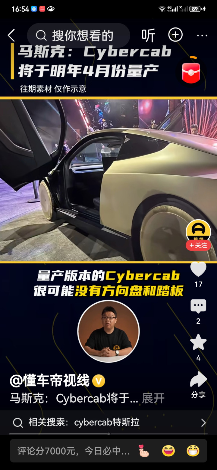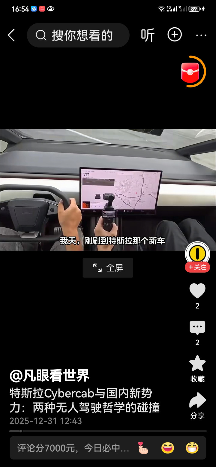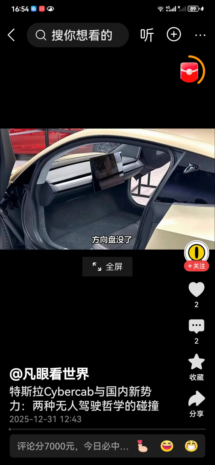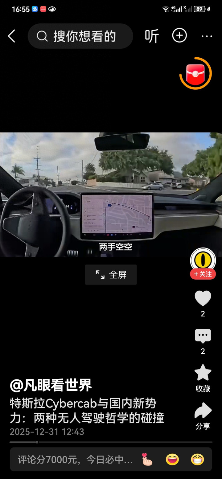 成本控制是Cybercab的核心竞争力之一。通过纯视觉方案替代激光雷达,其硬件成本较竞品降低60%以上,目标售价锁定在3万美元以下(约合21万人民币)。运营层面,单英里成本仅0.2美元(约1.4元人民币),仅为传统网约车的1/3,按此测算,单辆车年利润潜力超3万美元。用户使用时可通过特斯拉官方APP下单,车辆将自动导航接驾,车内屏幕支持音乐、导航等交互功能,收费预计为每英里0.3-0.4美元,比传统出租车更具价格优势。